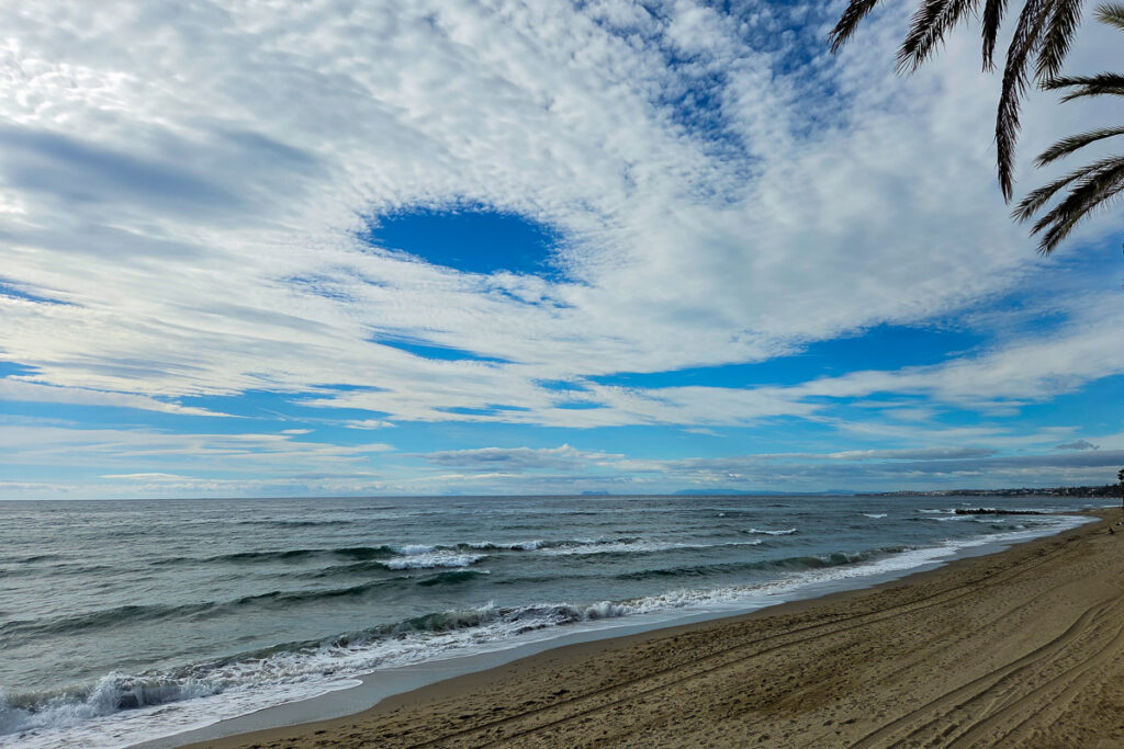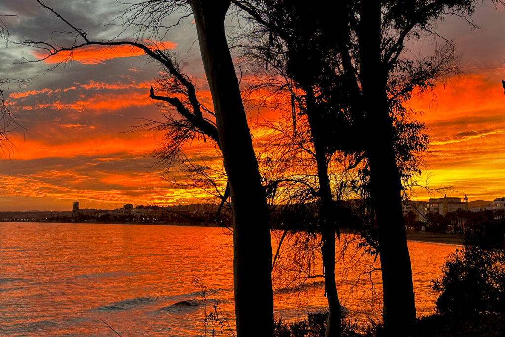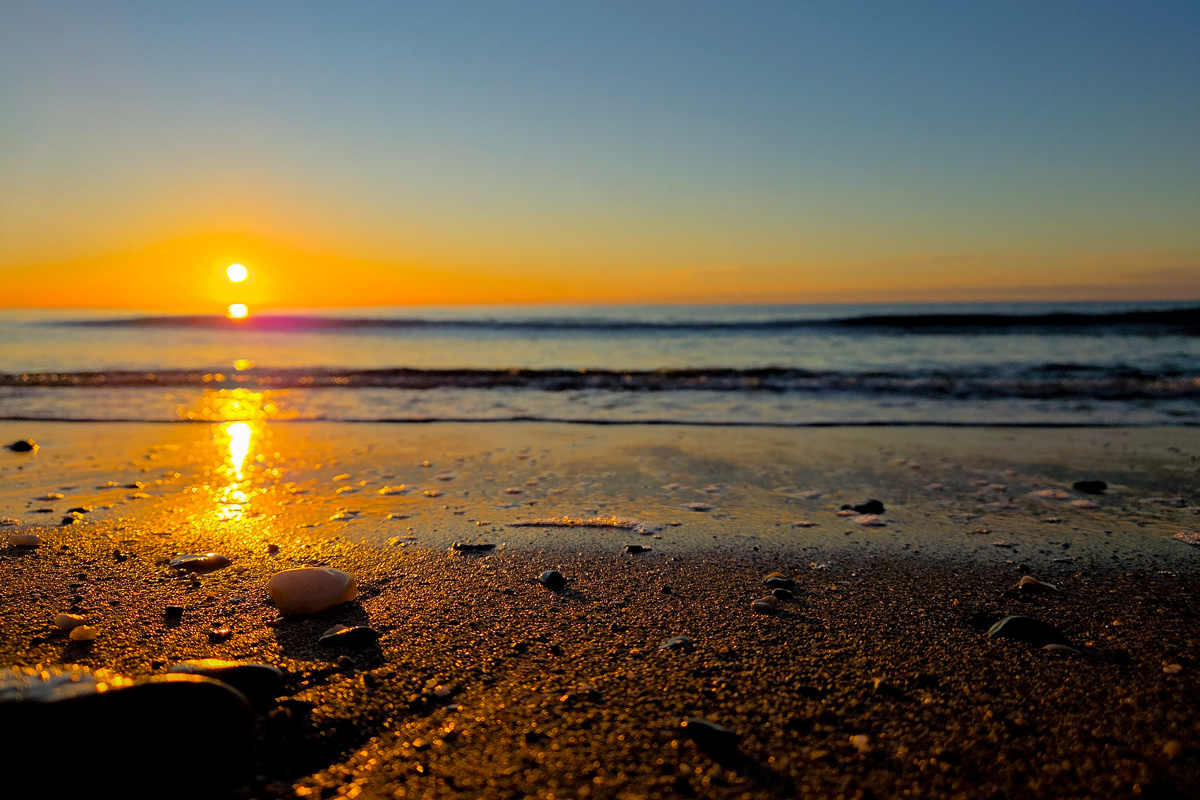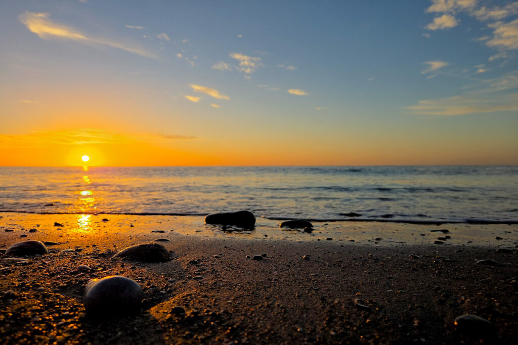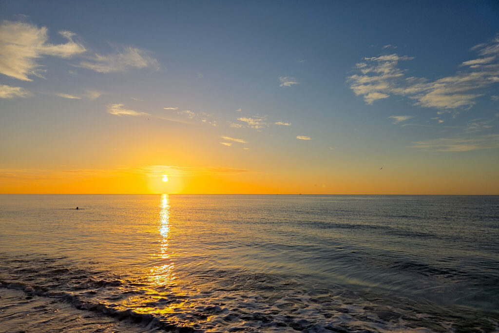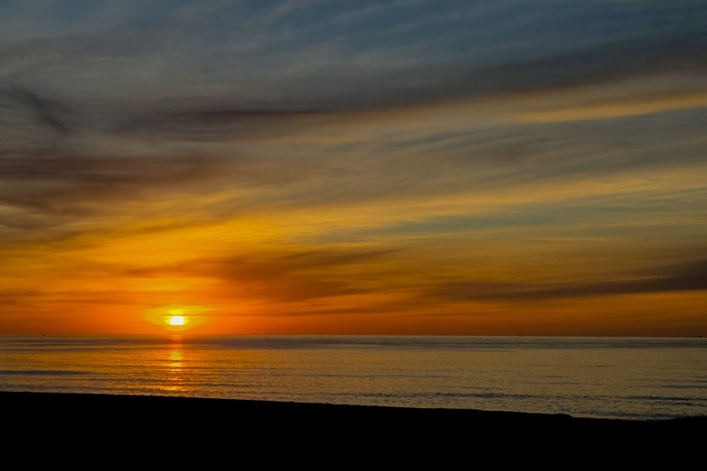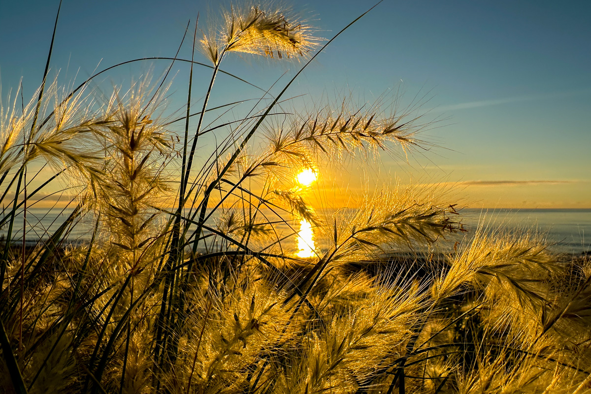Unser Morgenspaziergang zeigt heute neben dem Sonnenaufgang auch ein schönes Sonnenlicht auf einer Wolkenfront über den Bergen.