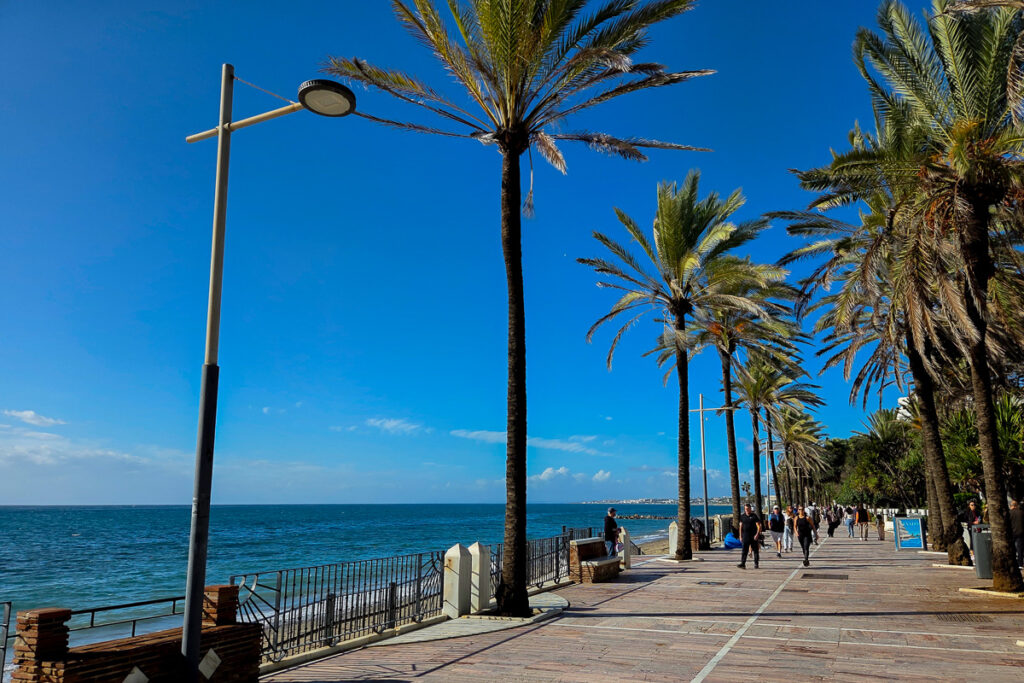 Auf dem Weg nach Hause kommen wir an den Brunnen vorbei, die Abends in verschiedenen Farben beleuchtet sind.