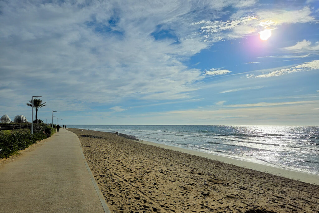 Doch wieder macht mir die Komoot-App einen Strich durch die Rechnung und der eingezeichnete Weg ist nicht befahrbar. Ich schiebe das Rad durch eine 100 Meter lange Engstelle (links ein Zaun, rechts hoch gewachsenes Schilf) in der Hoffnung, dass es danach, wie eingezeichnet, weiter geht.