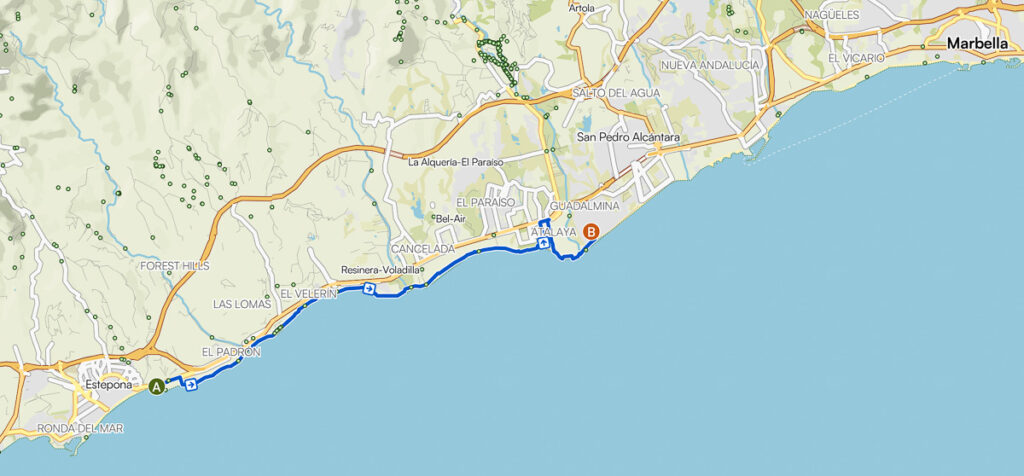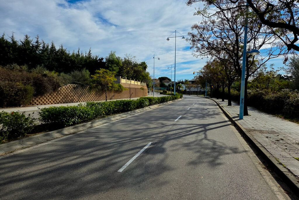 Links oben wäre es auch noch weiter gegangen. Ich kehre um, weil dort zwei freilaufende Hunde auf der Straße sind sind und den vorbeifahrenden Autos und Motorrad Fahrern nachlaufen. So sind es am Ende: 39 Minuten unterwegs, 9,3 km gefahren und 110 Höhenmeter trainiert. Das Höhenprofil zeigt, dass es immer auf und ab geht und es sich bei der Hinfahrt nicht um einen kontinuierlichen Aufstieg handelt und es bei der Rückfahrt nicht stetig bergab geht.